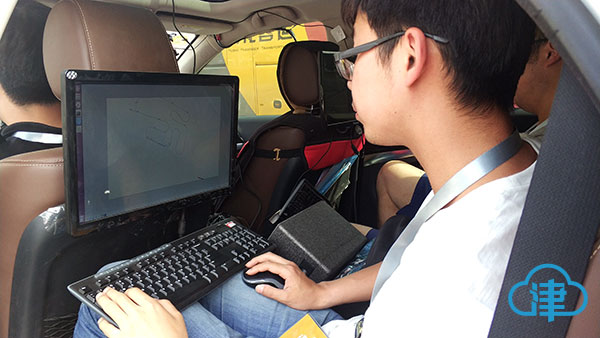 猛狮车队的赛车是比亚迪油电混合动力车,经改装后,车前、车顶分别安装了雷达,可以探测前方以及360°位置的障碍物和闯入物,雷达反应时间为100毫秒以内,可以迅速识别闯入物是动物、行人、车辆等,并由计算机系统控制车辆迅速做出反应,从发现到识别再到做出正确指令,反应速度远超人类驾驶员。津云新闻记者乘坐参赛车试跑——这是一个小型的U型停车场,道路十分狭窄。车辆启动后,从一端口进入,记者注意,在拐弯处有两辆车在此停放,两车之间留下的宽度只有2.5米左右,参赛车行驶至此处后,只见方向自动盘慢慢转向,车辆以10公里/小时左右的速度安全通过。
