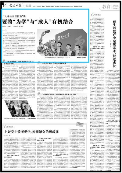 采访中,也有人表示担心:“大学生生活指南”类课程的开设很有意义,但所教内容会不会流于技术化,缺乏更深层的意义?该怎样避免?