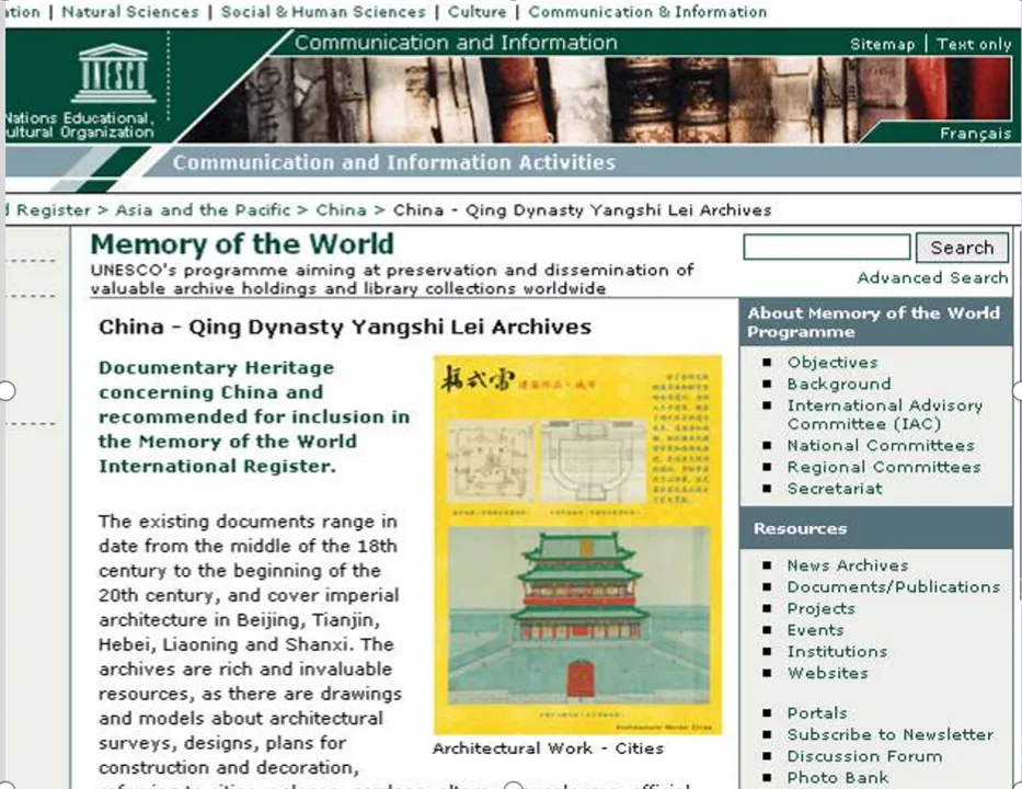 2007年,“中国清代样式雷建筑图档”被列入《世界记忆遗产名录》,中国建筑作为人类智慧资源的不朽价值,在那一刻终于得到世界的认同和尊重。