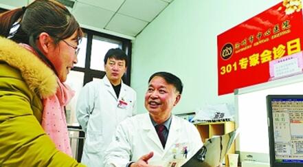 中国人民解放军总医院专家(右一)在河北省沧州市中心医院与患者交流。新华社发