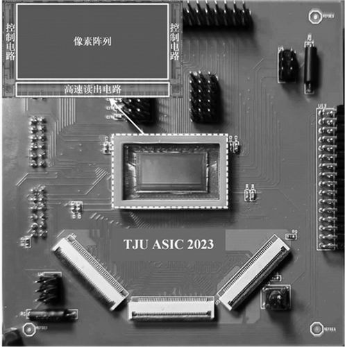 高性能感算一体仿生视觉智能CMOS图像传感器芯片及其印制电路板。 天津大学供图