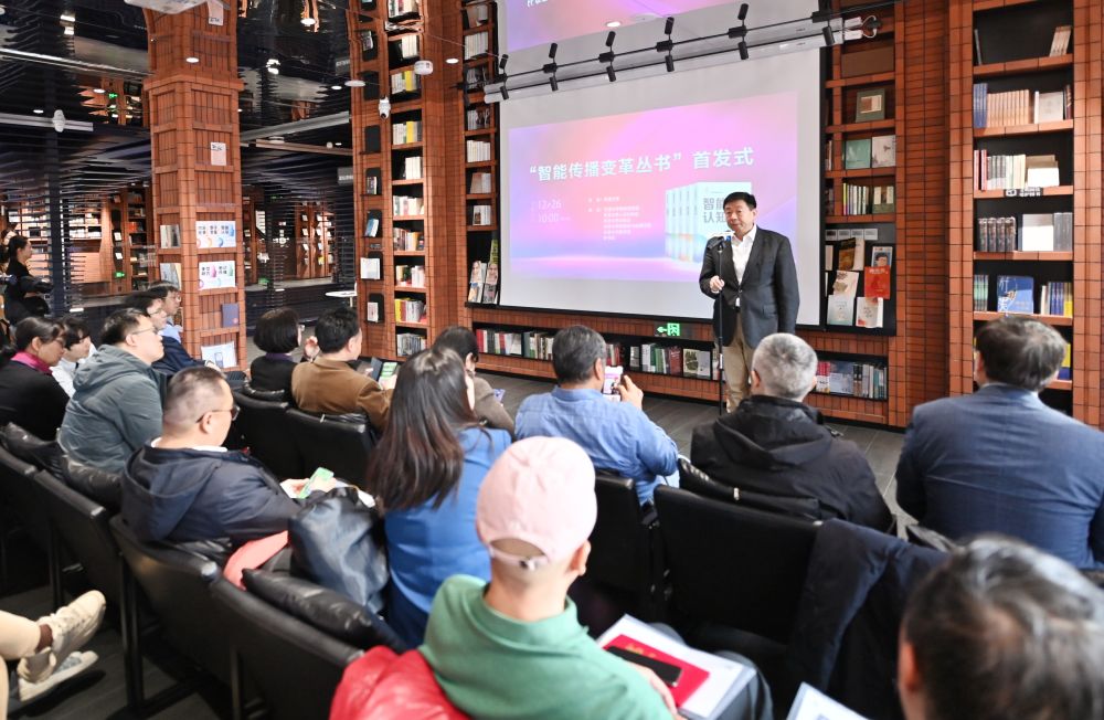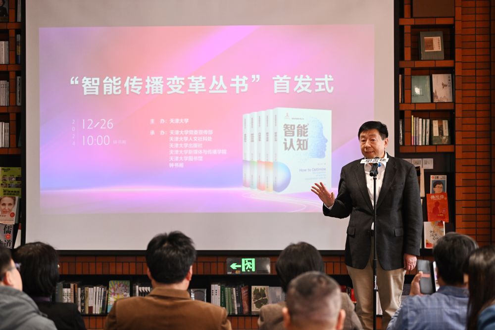 新华社记者李然摄新华社客户端天津12月26日电(记者张建新)26日,在天津市河北区钟书阁内,2024年国家出版基金项目“智能传播变革丛书”正式首发。