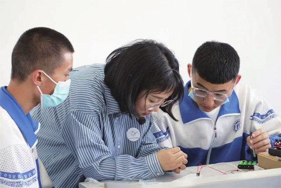 天津大学研究生支教团成员胡玥指导学生参加云课堂奇妙电子世界的实验。胡玥供图