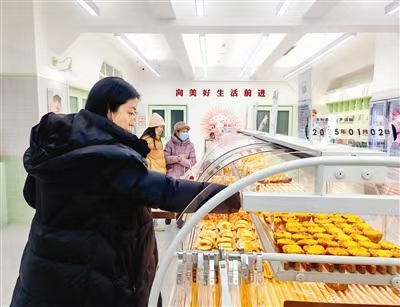 天开园配套面包店内员工买早餐