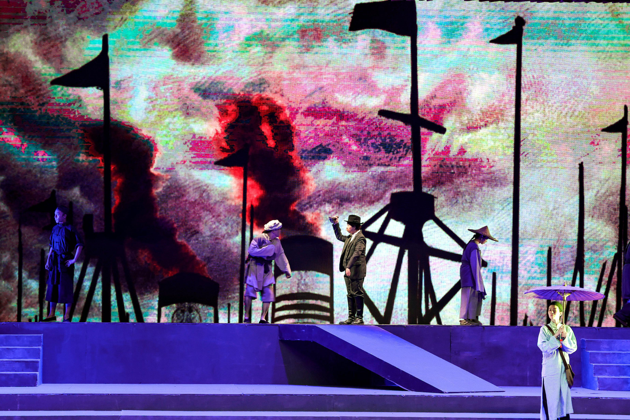 “终有一天,那些工厂会是我们中国人的!终有一天,江海上的轮船会是我们中国人造的!终有一天,那一条条铁路的主权是属于我们中国人的!”灯光缓缓亮起,一位打着油纸伞的少年走上舞台,面对着国家彼时技术落后与受人欺凌的现状,坚定了“要用科学技术振兴民族”的伟大信念......