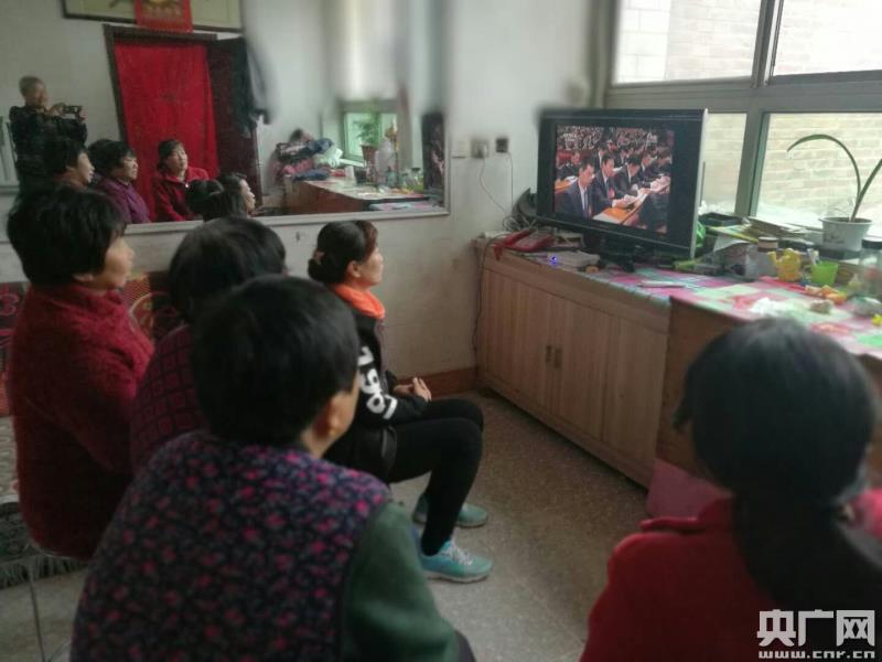 蓟州区侯家营镇西孔庄村妇女收看十九大开幕式。