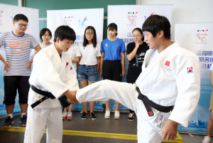 因同处一个年龄段,我们之间似乎有更多的话题。常常听到一句话:那些光鲜亮丽的背后付出了多少鲜为人知的努力。柔道冠军似乎更承担了许多责任,忍受了许多寂寞与枯燥。她们不放弃,不仅是为了自己,也是因为她们承载了许多人的希望。能上场亲身体验并得到两位冠军的指导,我体会到了学习柔道的乐趣,它不是简单的摔摔跤而已,更包含对柔道,对对手的尊重。
