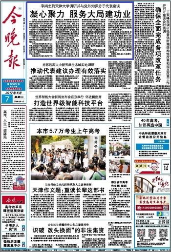 (《今晚报》 2017年6月7号 头版头条)