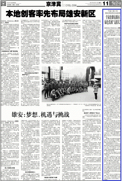 本报讯 中国青年报·中青在线记者 胡春艳 地处京津冀腹地的河北雄安新区,一经设立便被寄予厚望——“千年大计、国家大事”。这意味着,这个继深圳经济特区和上海浦东新区之后的又一具有全国意义的新区,是京津冀的,又不仅是京津冀的。