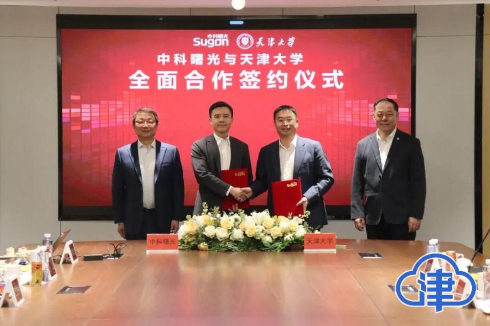 天津大学与中科曙光公司均表示本着“校企联动、优势互补、合作共赢、共同发展”的原则,全面开展校企融合创新,并签署合作。双方围绕科研技术、联合实验室建设、特色示范学院建设、人才培养、数字校园等方向,充分调动发挥各自在学科建设、专业领域、科研能力及基础设施等方面的优势,聚焦科技前沿和产业共性关键技术,凝聚各方产业资源和科研力量,开展产学研用融合,实现科技研发成果转移转化,推动产业共性技术创新发展。