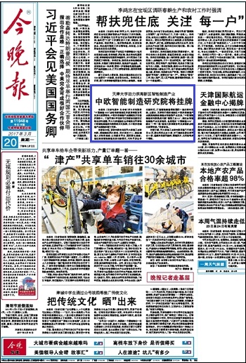 本报讯 (记者马庚申 孔令彬)作为本市推进“中国制造2025”战略和滨海新区承接京津冀协同发展的重要载体,中欧先进制造产业园建设正在稳步推进中。日前天津大学党委书记李家俊在接受记者采访时透露,天大与滨海新区合作建设的天津市中欧智能制造研究院即将正式挂牌,为中欧先进制造产业园提供智力支撑。