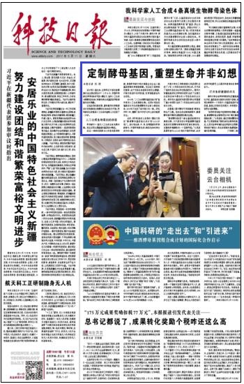 此次,《科学》杂志上发表的7篇论文来自“酿酒酵母基因组合成计划(Sc2.0计划)”。该计划由美、中、英、法等国家的科学家参与,中国科学家完成5条染色体化学合成中的4条。