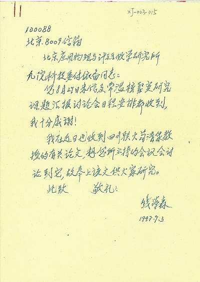 今年79岁的中国工程院院士杜祥琬对与数学家周毓麟院士的书信来往记忆深刻——周毓麟不仅对杜祥琬寄给他的论文内容给予非常具体的指导,还在来信中提出“另起一行的数学公式是否该退两格的问题”。“这位比我大十几岁的老先生对我的影响很深。”杜祥琬说,“看似简单的格式问题,实际上折射出老先生极其严谨的治学态度。”