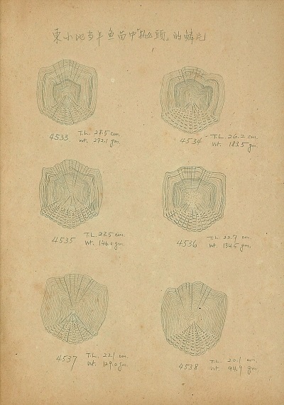 图③:1966年刘建康院士手绘的鱼鳞片图。中国科协供图