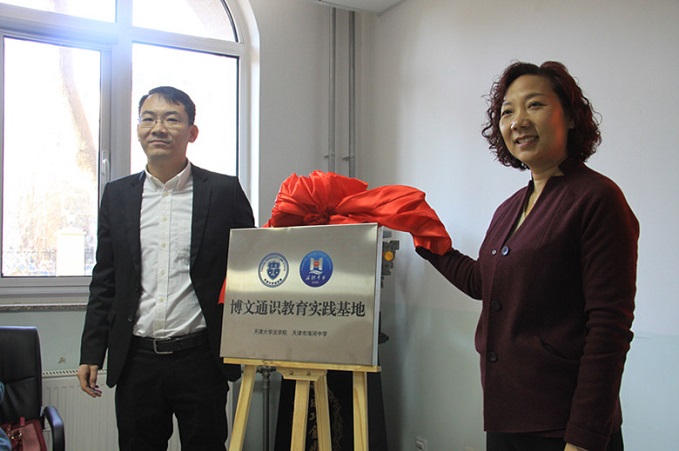 随后,天津大学法学院党委副书记、副院长赵成志和海河中学校长钱丽梅共同为“博文通识教育实践基地”揭牌,并共同签署了《博文通识教育基地共建协议书》。