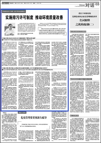 中国环境报:省以下监测监察执法垂直管理制度刚刚推行。在垂直管理改革的背景下,如何有效推进排污许可工作?