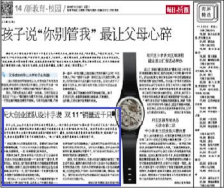 (新报记者 刘德胜 通讯员 赵习钧)今年3月,2016年巴塞尔世界钟表珠宝博览会上,一款中国自主研发的“水墨双鱼”手表吸引了众多厂商的注意,甚至有国际一线奢侈品牌当场提出想买下这款能让表盘上的鱼“游起来”的手表。这款手表的工业设计灵感源自于天津大学工业设计专业的创业团队“润世设计”。最近,他们的几款手表设计被代理商选中,首批投产1.9万只,给企业直接带来了近千万的销售收入。“双11”期间,这些手表短短几天销售近千只。