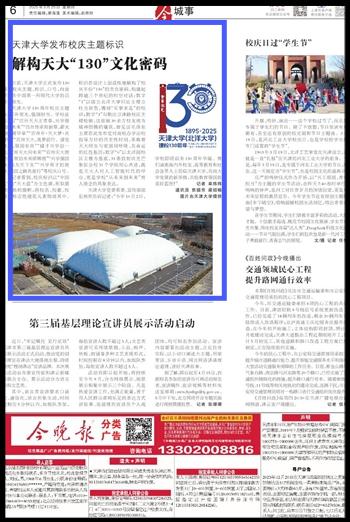 今晚报讯(记者 单炜炜 通讯员 焦德芳 梁绍楠)日前,天津大学正式发布130周年校庆主题、标识、口号,向世界宣告中国第一所现代大学的自豪与荣光。