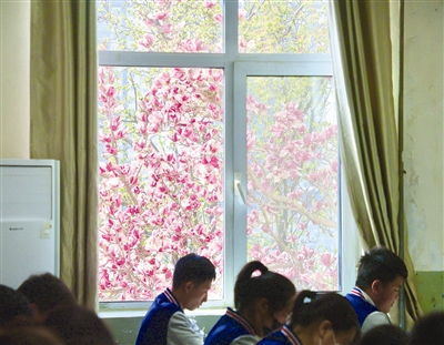 种满了海棠的校园,整洁明亮的教室对于高一年级的何韵寒和赵非凡来说就像充满了魔力。何韵寒腼腆地告诉记者:“春天里淡粉色的花瓣,玫红色的花骨朵,娇艳欲滴,每每看到都会忍不住多看几眼。为了能够多看几眼教室前的海棠,我每天都要在学校上晚自习,就是为了能够看到晚上校园里教室外灯影摇曳中的海棠。”赵非凡告诉记者,他每天都是从期待上学的甜美梦乡中醒来,用最快的速度起床洗漱,迫不及待地奔向学校,奔向教室。