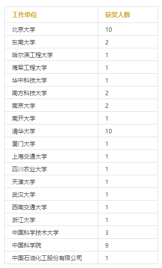 从分布院校来看,获奖人所在的机构除了清华大学、北京大学等知名院校外,还有四川农业大学、西南交通大学等西部地区的高校。