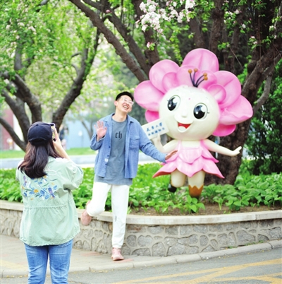 校园春好,学生在花下留影。 本报记者 姜宝成 通讯员 韩宝志 摄