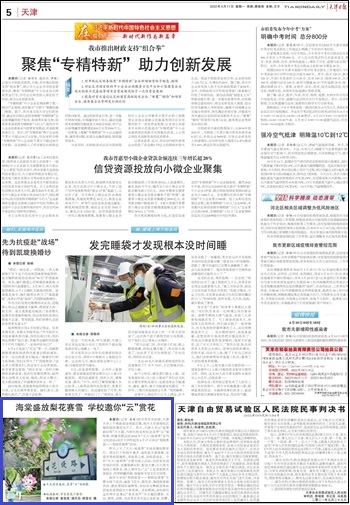 天津日报:http://epaper.tianjinwe.com/tjrb/html/2022-04/11/content_155_5981190.htm