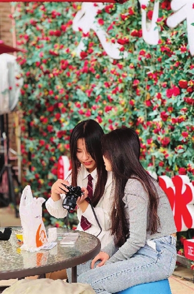 周末一早,记者乘车前往我市的网红赏花胜地五大道景区,“春天花会开,鸟儿自由自在……”网约车上应景地播放起任贤齐的《春天花会开》,让人心情也不由自主地随音乐悦动起来,打开车窗,空气里夹杂着花的香甜,目的地还未到,“春”的气息就扑面而来。上午9点的大理道和睦南道两侧,站满了慕名而来的摄影爱好者,年轻游客也大都是有备而来,其中不少人都在手机里提前收藏了精华路线和点位。“早晨8点半,第一站先到睦南公园!现在玉兰花开了,白粉相间的花树,搭配欧式园林,拍人像‘绝美’!”来自山西的旅游博主禾桉在小红书上分享起五大道赏花的美好体验和详细攻略,“从睦南道骑车10分钟到解放北园,那有棵海棠王,树干比人还粗,晚上灯光亮起来很梦幻……”记者注意到,在各种图文攻略甚至视频攻略的助力下,很多年轻游客都精准地找到了赏花拍花的位置,甚至精准到某一棵花树。
