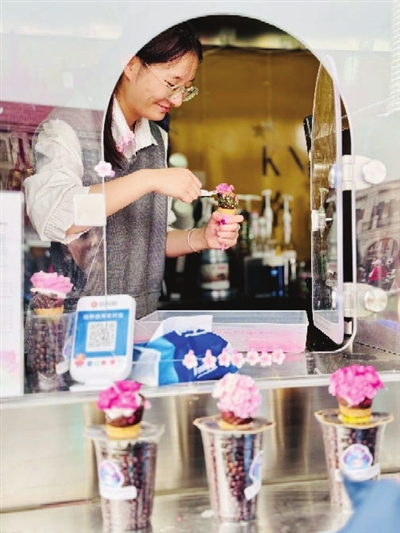 “您好,要不要尝一下我们‘樱花季限定’产品珞珈樱花拿铁?”在连锁品牌瑞幸咖啡的店内,春季的限定产品成了店内的主推。记者在走访中注意到,春日限定似乎成了各种咖啡店、西餐厅的标配,就连洋品牌星巴克也蹭起“春日经济”的流量,推出了消费满额可预约“近在春天”的周边产品。除了咖啡通过春日限定来融入春天,茶类产品更是在春天这个主场尽情发挥。不久前,茶饮品牌霸王茶姬在全国门店上线“醒时春山”系列饮品,“一叶龙井,万山春醒”“一杯‘醒时春山’留住一整个春天”等宣传语更是将“春”的氛围感拉满。据该品牌负责人介绍,为了迎合春日的气氛,在限定产品的包装视觉设计上以草木初生的春山气象为底色,呈现莺飞草长、万山春醒的盛景,力求给消费者带来味觉与视觉的双重春日体验,今年天津海棠花节期间,该品牌还将通过与国漫合作,结合天津特色文旅活动,营造各种春日“会友”场景,打造自带情感联结与话题属性的城市快闪活动,让市民在茶香、花香里探索健康生活。
