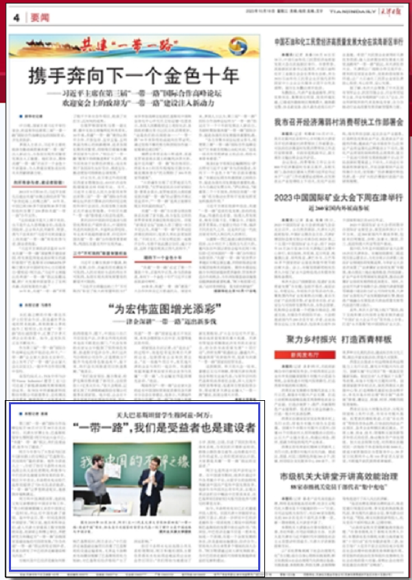 第三届“一带一路”国际合作高峰论坛于10月17日至18日在北京举行。天津大学博士生、巴基斯坦留学生穆阿兹·阿万对此兴奋不已:“共建‘一带一路’倡议,我们是受益者,也参与了建设。”