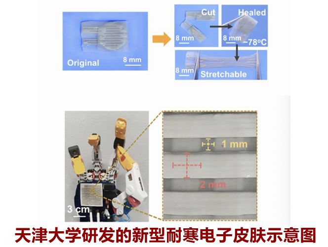 日前,天津大学化工学院张雷、杨静团队成功研发新型电子皮肤。据介绍,这种皮肤可在零下78°C的严寒环境中实现机器手的高拉伸、自愈合和高灵敏功能,对我国开展极地科考具有重大意义。相关成果已发表于国际权威期刊《美国化学会志》。