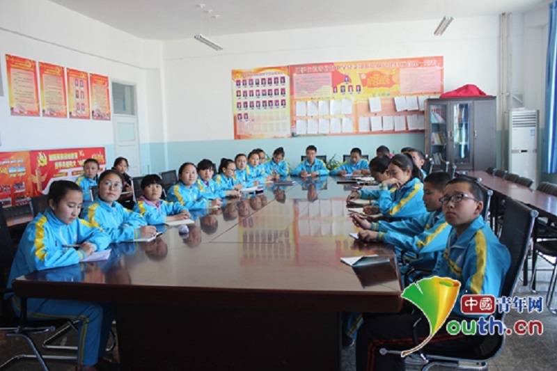 冲乎尔镇寄宿制中学学生认真听团课。天津大学研支团 供图