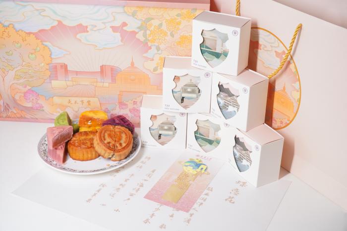今年,天津大学推出了“月满北洋”和“飨月天大”两个主题的文创月饼礼盒,月饼的造型、包装设计均由校内学生担纲。“月满北洋”主题延续历年天大月饼礼盒的传统风格,将校徽、校训、北洋纪念亭等学校标志性元素刻印在包装、提袋和月饼纹饰上,设有团圆版、纪念版、校徽版、糖醇版4种款式供人挑选,制作工艺则分为广式、乳酪、冰沙三大类。除了五仁、黑芝麻、莲蓉蛋黄等经典口味,今年的新款月饼还囊括了牛油果、水蜜桃、板栗等“网红款”;“飨月天大”主题则以书签礼盒为特色,又细分出“北洋洞天”与“花堤游月”两款不同选择:“北洋洞天”款整体以深蓝为主色,搭配立体线稿描绘出的“1895 Tianjin”字样;“花堤游月”款将饱含天大特色的牛顿苹果树和“天津大学星”作为设计元素,内部包装以镂空的“北洋盾”为窗,将天大美景以框景呈现,让品尝者在细嚼月饼的时候,也能徜徉天大秋色。据了解,目前学校已开通线上线下双通道同时售卖,为广大师生校友提供了便捷的购买渠道与多样化的选择。