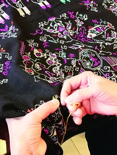 国家级非遗项目湖北黄梅挑花的传承人石九梅正在创作。本报记者 李韵摄/光明图片