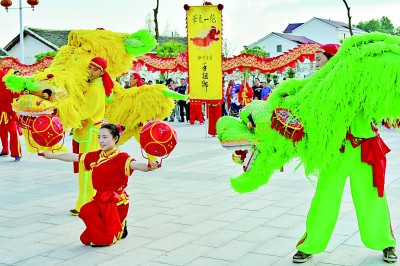 2023年1月27日,在江西省抚州市金溪县陆坊乡下李古村文化广场,当地非遗传承人在表演省级非遗手摇狮,欢天喜地闹新春。