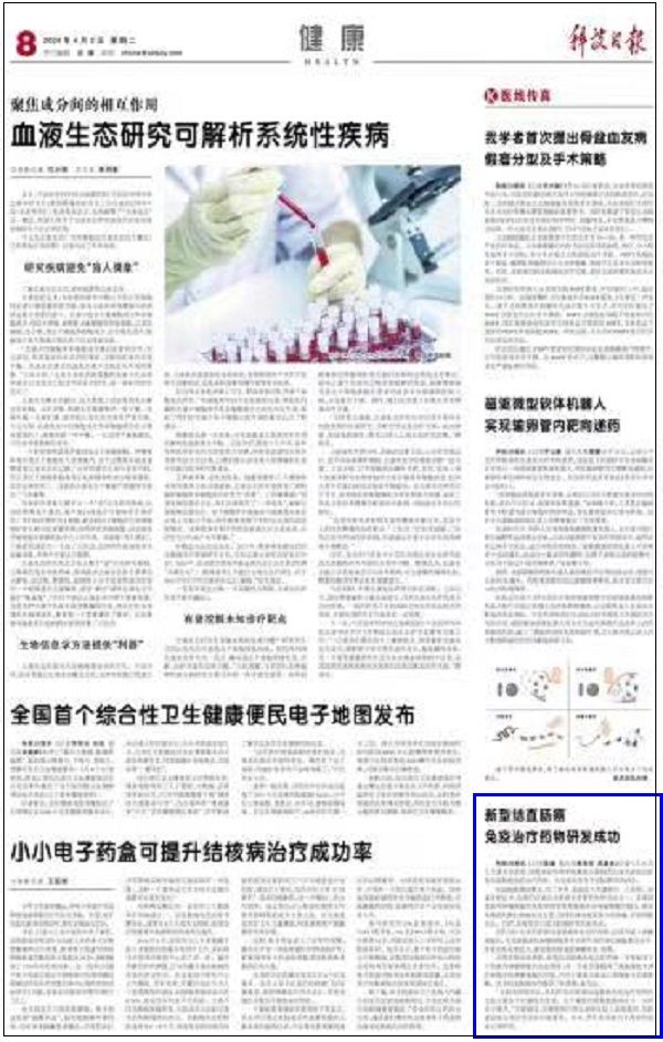 “与同类药物相比,我们研发的新型结直肠癌免疫治疗药物的优势主要在于对毒性的改善。关于毒性的检测数据将在下一步研究中展开。”吕春婉说,尽管药物已经在动物实验上取得成功,但距离临床应用还有很长的路要走。未来,团队也将着力于药物的临床应用研究。