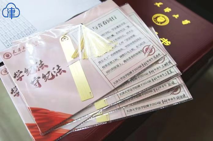 “心有所畏,方能行有所止”“初心如磐、使命如炬”“我心昭昭、不畏迢迢”“不断掸去思想上的灰尘”“不忘初心、方得始终”“心中有尺、行中有度”……今年的毕业季恰逢党纪学习教育期间,天津大学法学院特别为每名毕业生定制了镌刻有其座右铭的“戒尺”书签作为毕业礼物。法学院院长孙佑海教授也嘱咐各位毕业生扣好人生“第一粒扣子”,养成廉洁奉公的习惯,在将来的工作中无论从事何种工作,都要增强纪律意识、规矩意识,做社会风气的引领者、营造者、维护者,希望大家不忘在学校玉壶冰一样的初心。