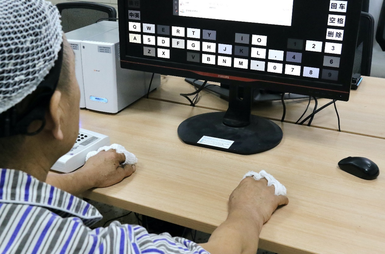 在使用“神工”脑机微信操作系统时,使用者戴上接触头皮的脑电帽,操作面前的电脑显示屏。电脑键盘上的53个基本指令按键,以虚拟键盘的形式呈现在显示屏上,并用不同的频率闪烁。使用者想要打字时,比如说要拼写“tianjin”,只需要用眼睛依次盯着要拼写的字符,大脑在接收到每一个字符闪烁频率后,就会积极响应,脑电帽即可实时采集到使用者的拼写意图,系统通过解码用户脑电波,得到用户意图后进行识别,目标字符就会输出在微信的聊天框中,并输出文字,从而实现“意念聊天”。