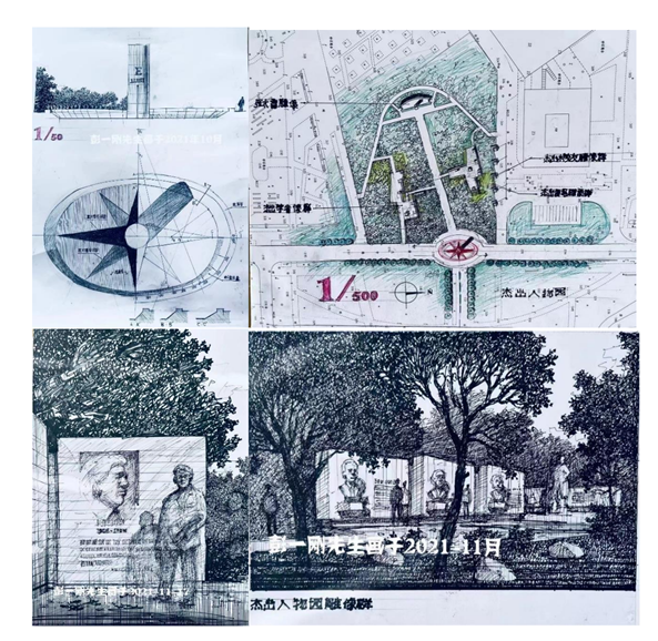 近日,天津大学教授、准“90后”院士彭一刚先生的四张手绘图在朋友圈火了。这四张设计手稿是彭一刚为天津大学新校区太雷广场做的景观设计初样,每一幅都堪称艺术品。其中一张人物雕像设计图,彭一刚仅仅花了2个小时就完成了。