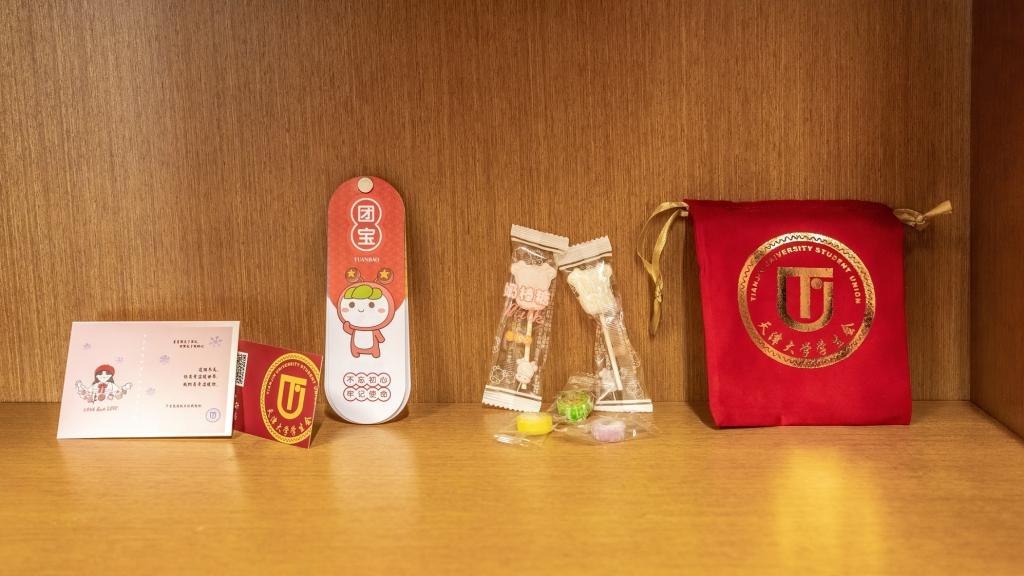 冬至这天,清晨的天大校园,早早起来自习上课的同学们惊喜地发现,在道路两旁的树梢、宿舍围墙的栏杆、共享单车的车筐、图书馆书架的角落,一个个红彤彤、明艳艳的暖心福袋点缀其中,成了校园里靓丽的风景线。随便打开一个福袋,里边更是“诚意十足”“干货满满”:精美的书签、实用的文具袋、健身弹力带、可爱绿植杯……“每年这个时间,学生会的小伙伴们都会化身温暖特派员,悄悄在校园各个角落藏好小礼物,给正在备战考研和期末考的同学们送上一份温暖的惊喜。”天津大学学生会负责人齐雨婷同学表示,“今年我们在校园里一共安放了666份暖心福袋,我们以“三全五育”的思路策划了这份福袋礼物,其中五份不同的礼物分别寓意着德育、智育、体育、美育和劳动教育,旨在助力同学们成为具有天大品格、担当天大使命的时代新人。”