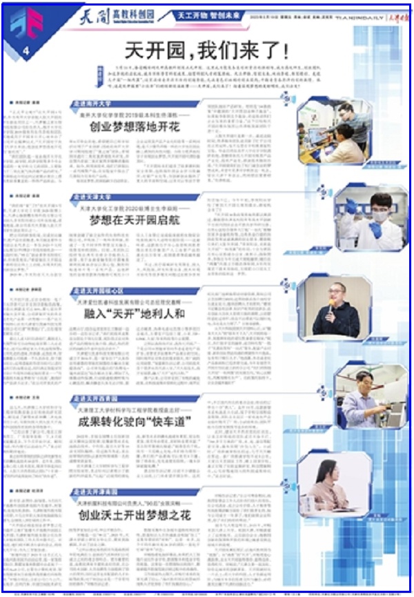入驻天开园只是第一步。最近这段时间,佟泽栋和团队成员除了忙于公司的正常运转,每天也要在学校做重复性实验。毕业后将在南开大学化学学院读研的他,想继续依托天开园实现其产品产业化、技术产业化,将该技术推向市场。“天开园使我们出了校门就创业的梦想成真,希望有更多同学抓住这一机会,留在天津干事创业,共同结出累累硕果。”佟泽栋说。