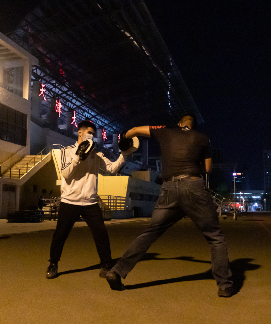 作为一名在自己的国家获得专业执照的格斗教练,“穆老师”教学经验丰富,在带领大家练拳的同时,对“安全”和“防疫”也是一点都不放松,他说:“拳击对人身体素质要求比较高,我会根据大家的实际情况,循序渐进组织练拳,练好但不累坏;我们的训练必须戴好口罩、保持距离,训练内容包括热身、空击、打手靶,但绝不组织实战,这样就杜绝了同学受伤的风险。”