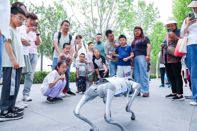 活动的亮点之一当属众多智能无人装备的精彩展示。天津大学带来了智能观光接驳车、清扫车、巡检全地形车、6旋翼无人机、具身智能机器人、机器狗等设备。这些智能装备不仅外观酷炫,还具备强大的功能,如自动行驶、智能识别、语音交互等。现场观众可以亲自体验无人驾驶接驳车的便捷,观赏机器狗的灵活动作,感受智能科技的魅力。天津英赛迪科技有限公司的无人机编队、六足机器人编队、双足机器人编队,以及天津攸信智能科技有限公司的机械臂、脑控无人机等展品,也引发了市民的极大兴趣,让大家近距离感受到智能科技的前沿成果。
