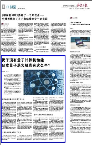 “准确地说,这台计算机是日本科研人员用光学器件构成的量子退火机,和加拿大D-Wave公司用超导器件构成的量子退火机放在一起比较,日本的量子退火机在某些指标上相对优越。”韩正甫说。