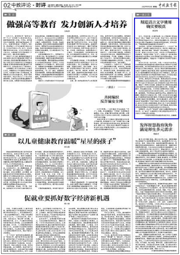 希望青年一代以对“的地得”较真儿的精神规范使用语言文字,让“栓Q”之类的词汇不再出现在学生的作文中,让语言文字释放更大的价值。(宋雪峰 作者系天津大学出版社党总支书记、总编辑)