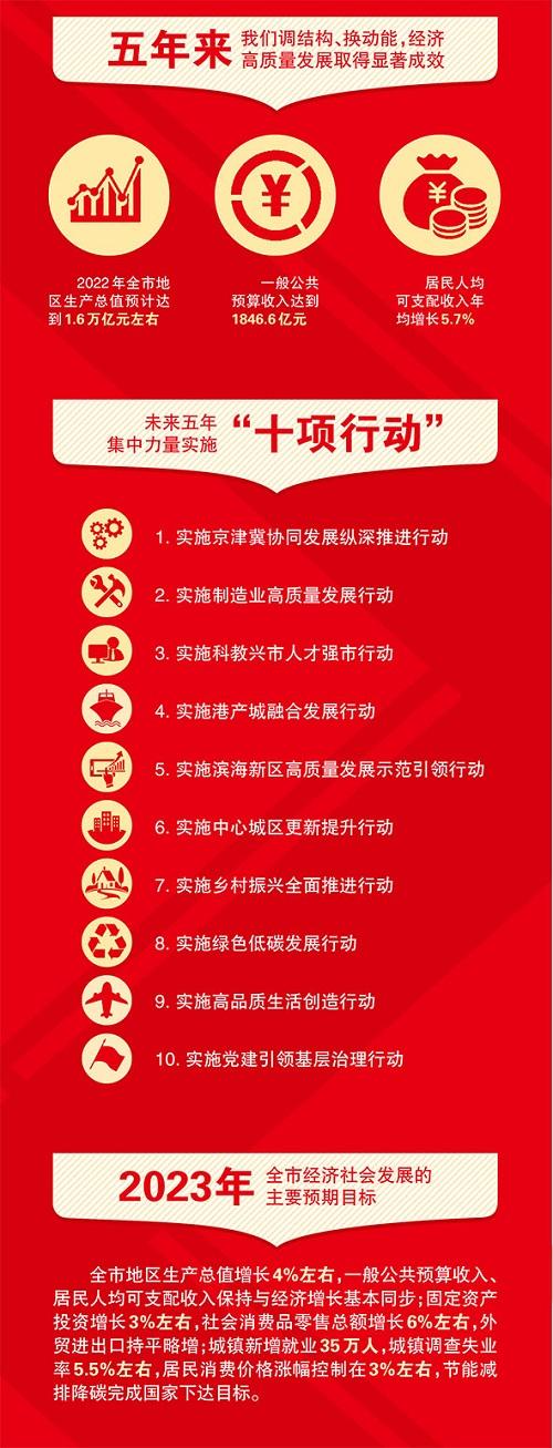 本报讯 市长张工在报告中说,今年是全面贯彻党的二十大精神的开局之年,是天津全面建设社会主义现代化大都市的关键之年。我们要更加积极主动推动“十项行动”落地见效,为全面建设社会主义现代化大都市开好局起好步。