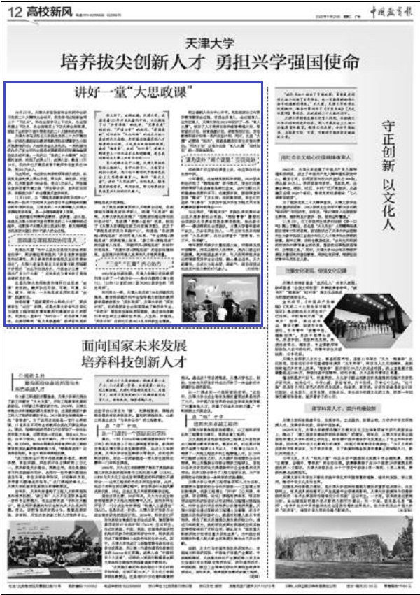 这是天津大学用制度和情怀打造思政“金课”的折射。教师队伍可信、可敬、可靠,乐为、敢为、有为,一大批思政名师和思政“金课”脱颖而出。