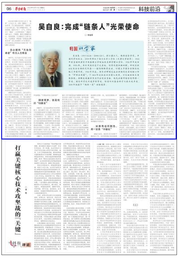 2008年5月24日19时45分,91岁的吴自良离开了人世。回顾他的一生,与材料打了一辈子交道,直至生命的最后一刻也未曾停下脚步。他不仅为我国第一颗原子弹成功安装了“心脏”,完成好“链条人”使命,还为我国科研事业注入一生心血,完成好“园丁人”使命。他的谦虚严谨、淡泊名利、无私奉献也影响着青年学人。(李金雨)
