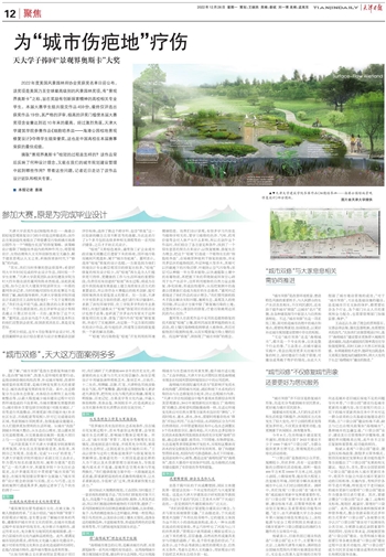 “这次获奖离不开天津大学建筑学院浓厚的美育氛围,学生在这里能够感受美、体验美,再到自己发现美、创造美,完成‘1+1>2’的质变。” 天津大学建筑学院环境设计系副主任王焱表示,作为国内知名的建筑院校、被称为建筑“老四校”之一的天津大学,其建筑学院十分关注社会需求,在许多建筑项目中贯彻着“城市双修”的理念,在城市规划建设管理中全面融入“城市双修”设计理念的创新与实践、匠心与巧思,这方面的案例可谓成果多多,她给记者举了几个我市的例子──