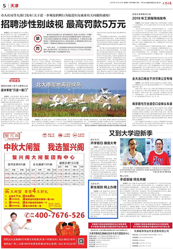 天津日报:http://epaper.tianjinwe.com/tjrb/html/2019-08/29/content_258024_1494467.htm