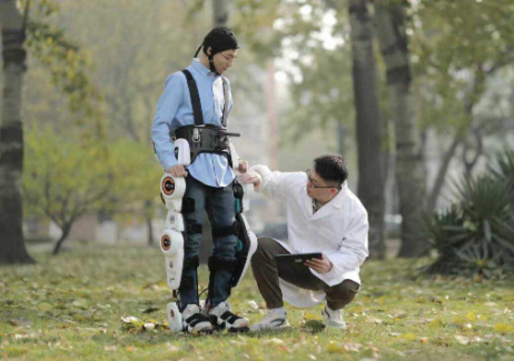 天津大学科研人员正在对脑机接口外骨骼机器人开展功能测试。北京日报图